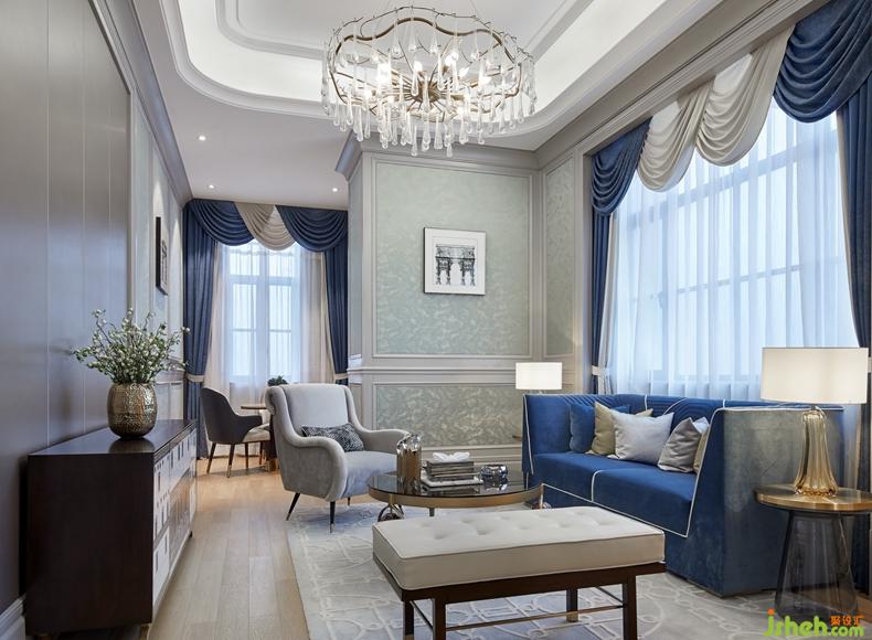 深度洽談區(qū)在設(shè)計上與主空間相互呼應(yīng),造型形式上直線與曲線相結(jié)合,硬裝以米灰色系為主調(diào),軟裝配飾上則偏于冷系色調(diào),色彩上跳躍藍(lán)色調(diào)。