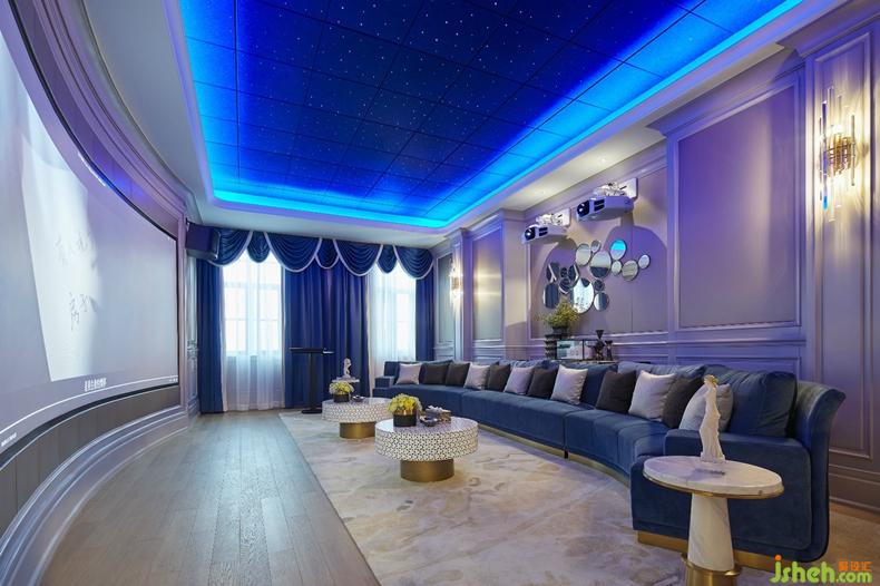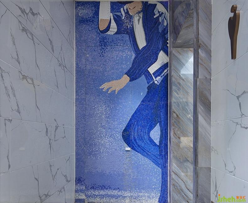 衛(wèi)生間區(qū)域以小顆粒馬賽克拼貼而成的藍色Jackson為背景墻,讓該停留區(qū)域充滿著爵士舞般的浪漫生活情懷。