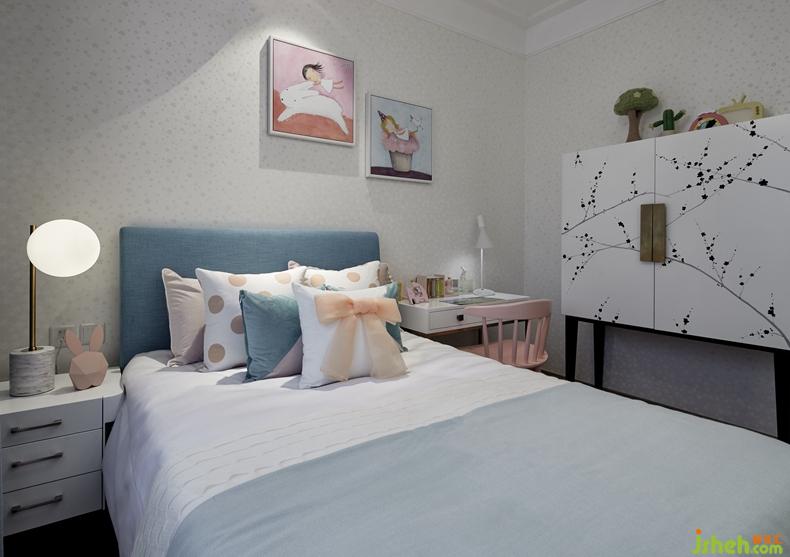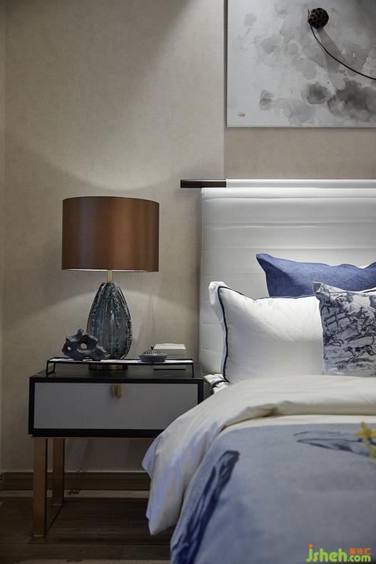Advocate lie space carries out the simple and clean color of whole bedroom, faint ink charm is in the head of a bed full-bodied dizzy open, match with the soft carving that is full of elegant interest ACTS the role of an article, book sweet tea charm, the space inside story that gives elegant and artistic charm lyric.