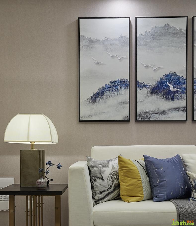 主臥空間貫徹整體居室的素凈色系,淡淡的墨韻在床頭濃郁暈開,配以富有雅趣的軟雕飾件,書香茶韻,抒寫出秀雅風(fēng)華的空間底蘊。
