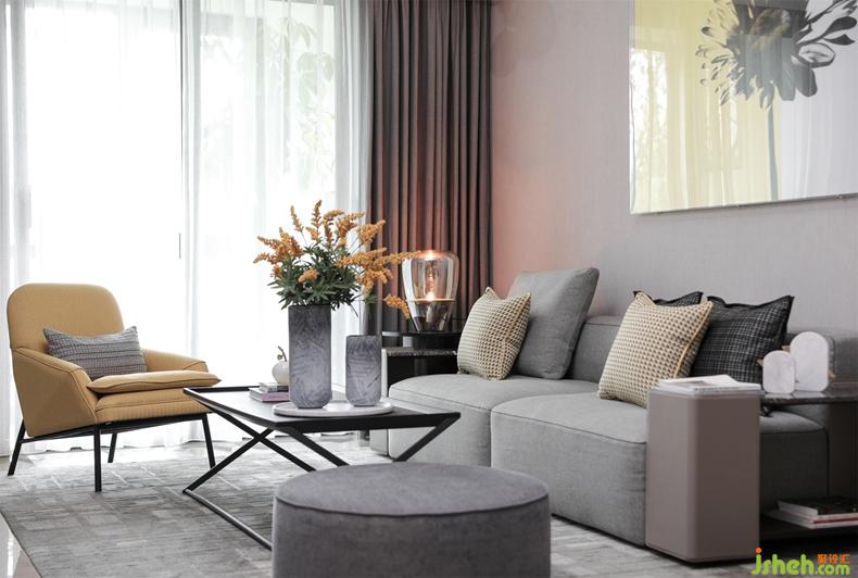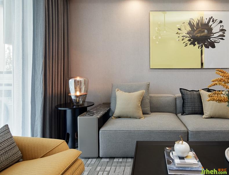 B1 model room gives priority to tone with orange yellow, pull back "modern modern" drama curtain, artistic hang a picture abstract atmosphere, one school orange yellow fastens the life breath that activates a space, be permeated with the joy that the autumn closes.