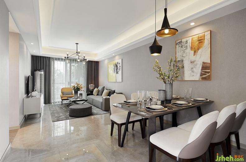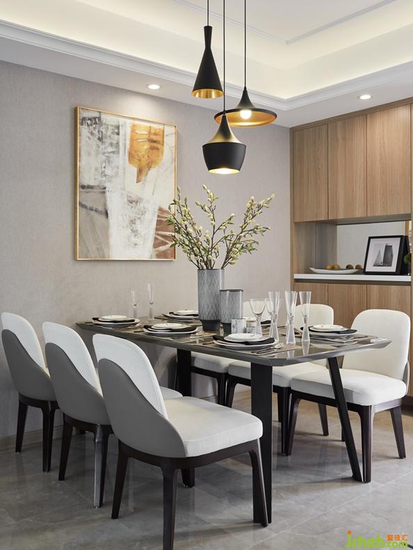 當(dāng)不同的使用場(chǎng)景在同一空間內(nèi)共存,如何保持空間場(chǎng)景的連貫性,同時(shí)引得區(qū)域與區(qū)域之間的個(gè)性凸顯出來(lái),便成為設(shè)計(jì)考量的原則之一。在B1樣板間的設(shè)計(jì)色系與材料挑選上,現(xiàn)代燈飾與墻面掛畫別具一格地相互呼應(yīng)著,在統(tǒng)一中又不失細(xì)節(jié)大氣。