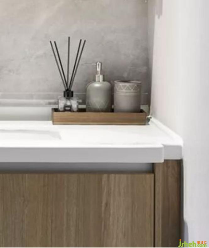 設(shè)計(jì)主材:仿石材地磚、人造石、強(qiáng)化實(shí)木復(fù)合地板、木飾面、深茶色不銹鋼、反磨砂玻璃等