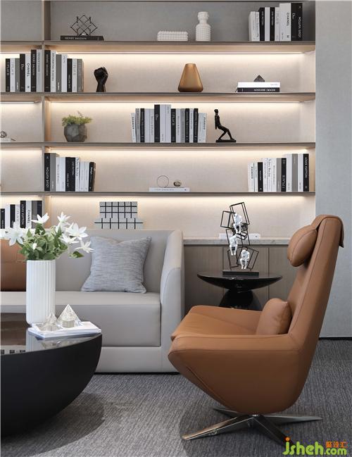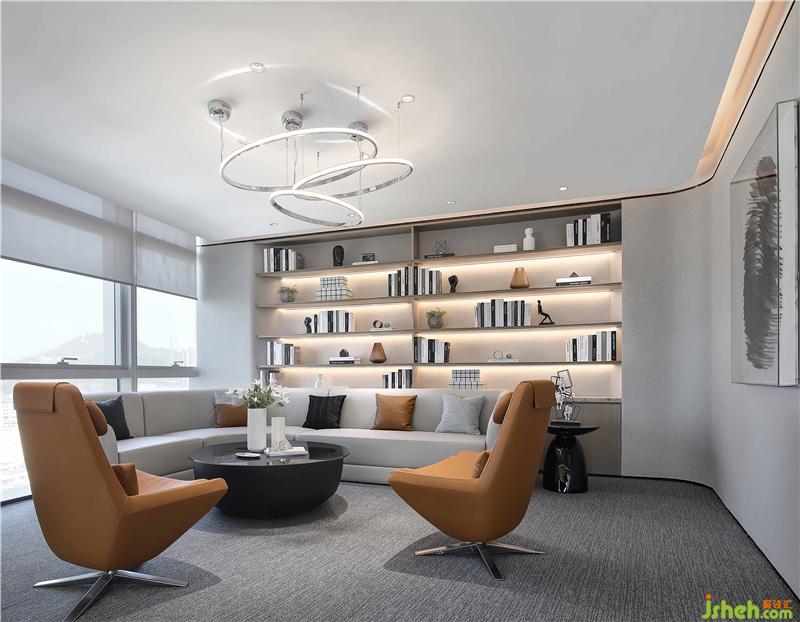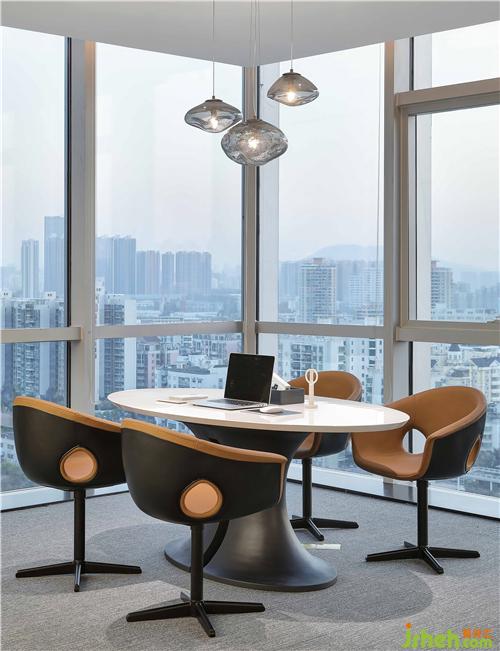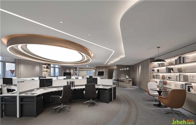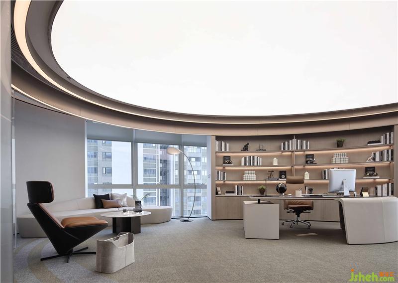 曲線與幾何在空間共存,線條的形式感使辦公室充滿現(xiàn)代化與品質(zhì)感,在視覺與使用上滿足辦公人群的情感訴求,構(gòu)建人的第一感性認(rèn)知。辦公室設(shè)計