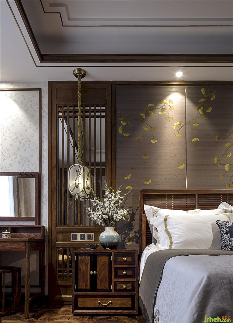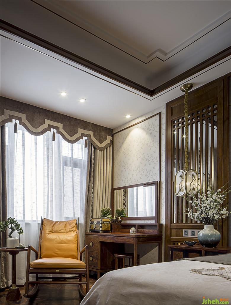 次臥自然清新的環(huán)境設計,室內設計師延續(xù)了整體空間的雅致,創(chuàng)造既不脫離傳統(tǒng),又有新的雍容華貴和審美情趣的中國之美。
