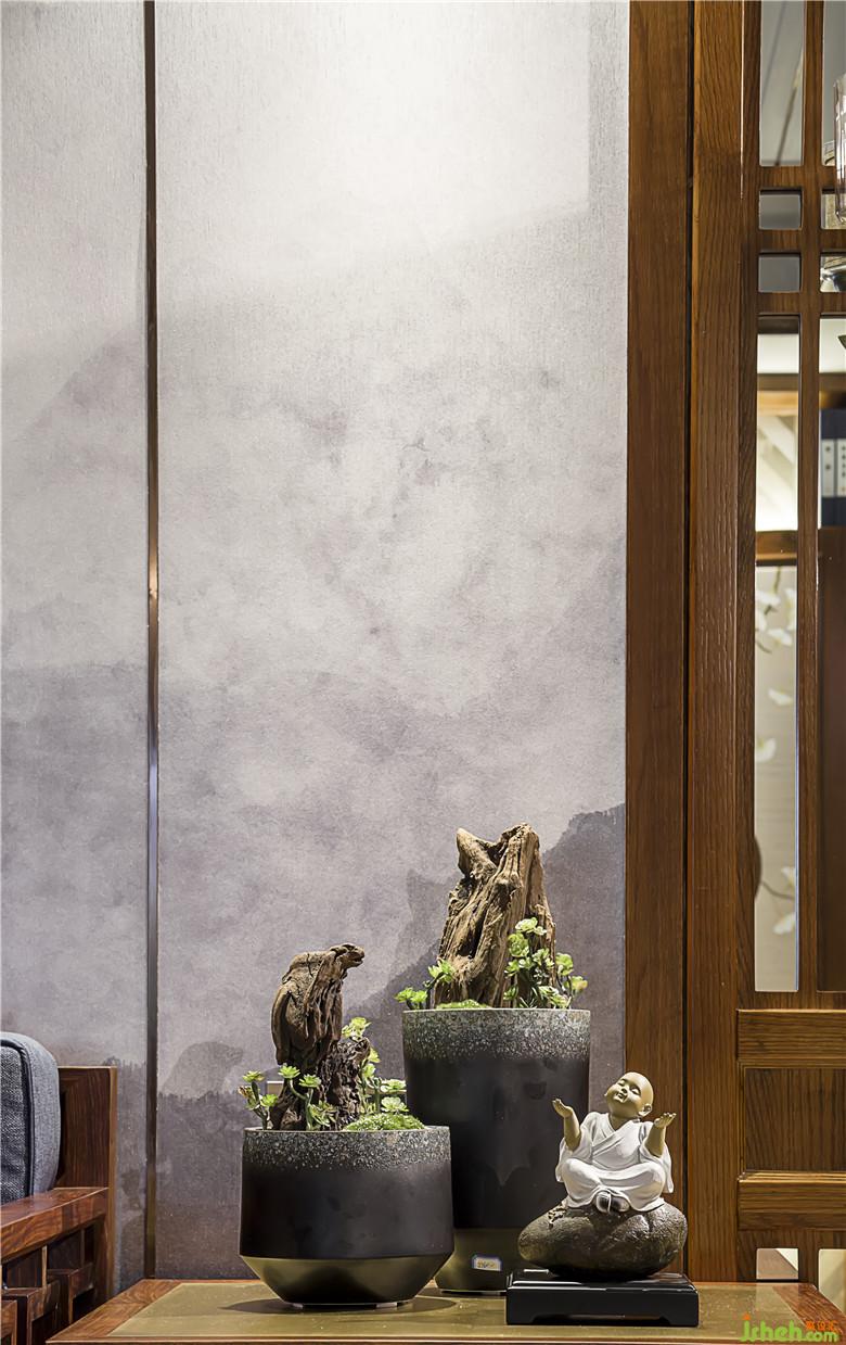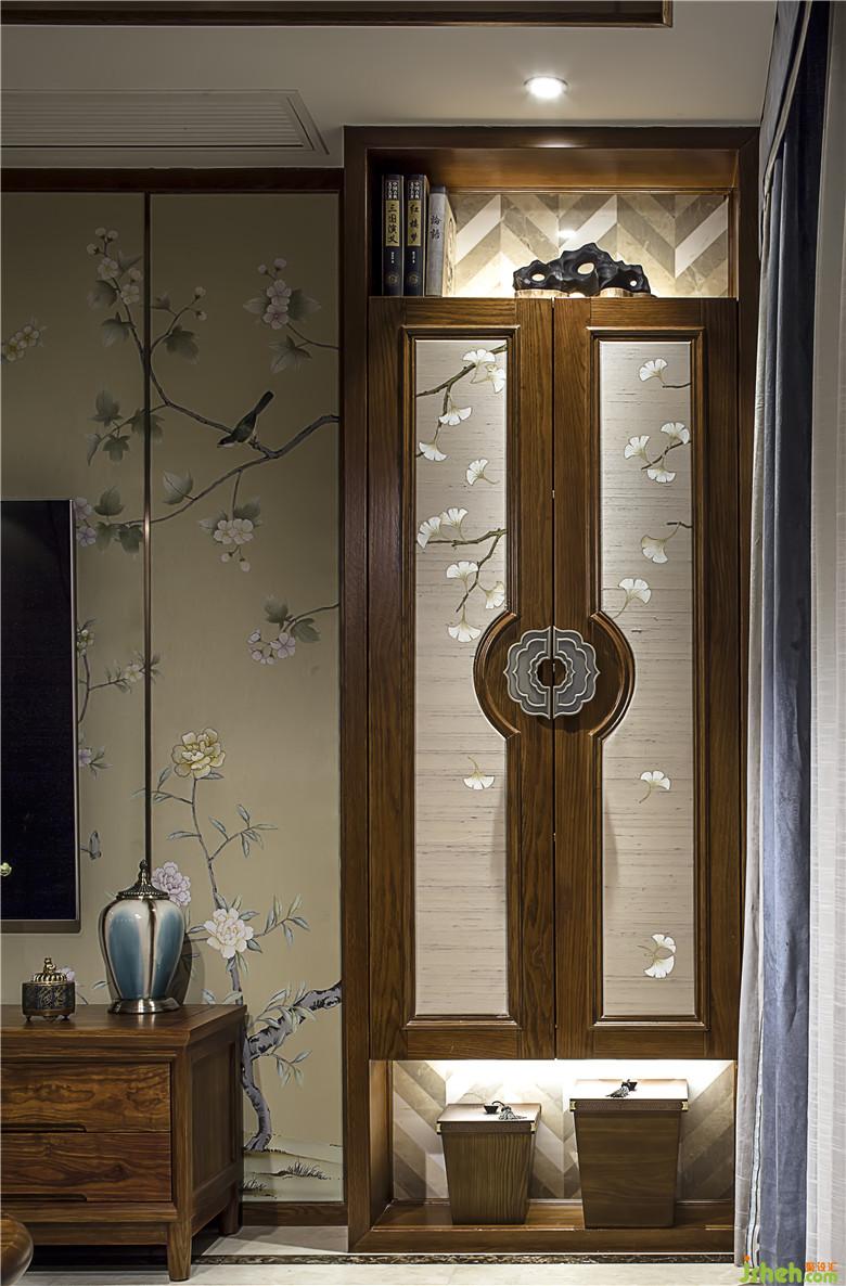 東方文化中,山水是人格修養(yǎng)或寓心明道的象征,室內(nèi)設(shè)計(jì)師在客廳背景處運(yùn)用山水元素將這種文人情性融入設(shè)計(jì),雄渾邈遠(yuǎn)的空間精巧詩意的細(xì)節(jié),兩美并峙,各領(lǐng)千秋,一川山水,滿室風(fēng)雅。走進(jìn)客廳,就能感受到主人對(duì)于生活的品質(zhì)追求。電視背景墻設(shè)置了儲(chǔ)物裝飾柜,滿足日常的收納需求,同時(shí)用絹絲刺繡鑲嵌,凸顯客廳的精致大氣。