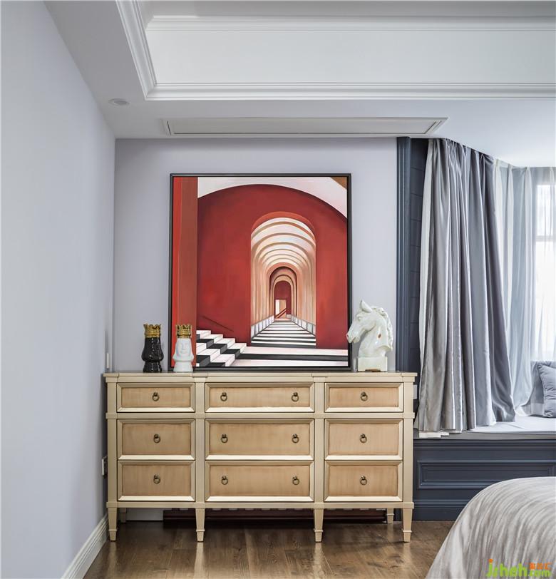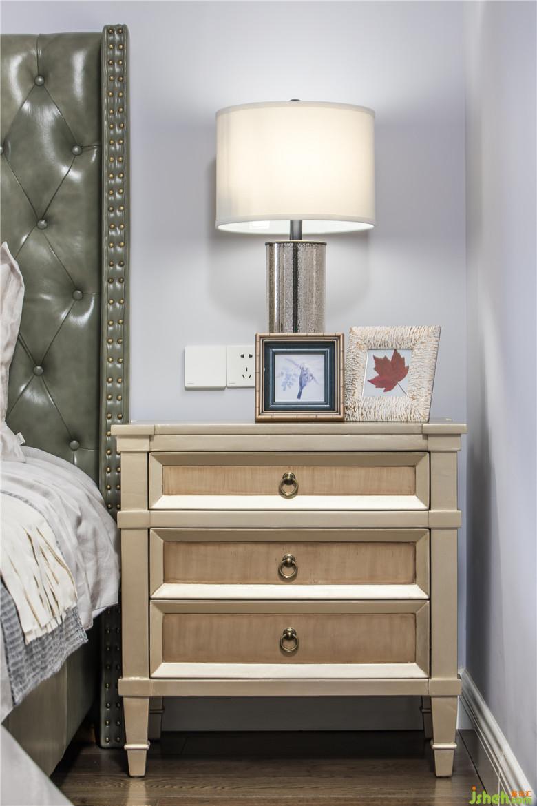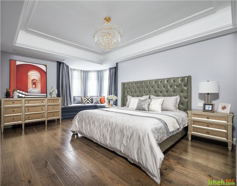 慵懶的臥室簡(jiǎn)潔舒適,啞光金屬色的床頭柜,用降低明度的做法,室內(nèi)設(shè)計(jì)師使空間保持隨意和柔和。皮面的床頭靠背與客廳主沙發(fā)在面料上不謀而合。