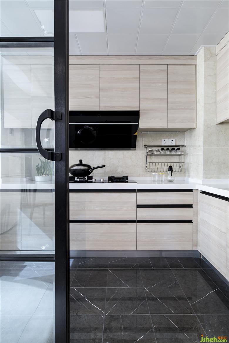 廚房雖然不豪奢,但是功能全面,簡(jiǎn)單干凈。淺淺的木紋,能給人暖暖的味道。