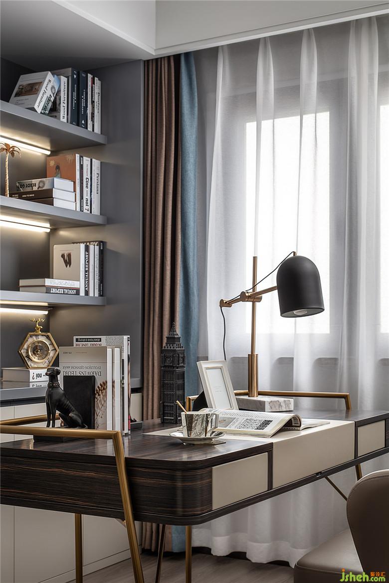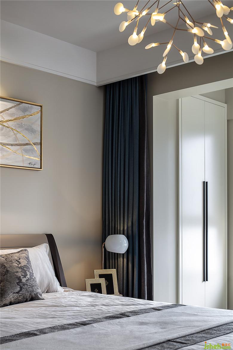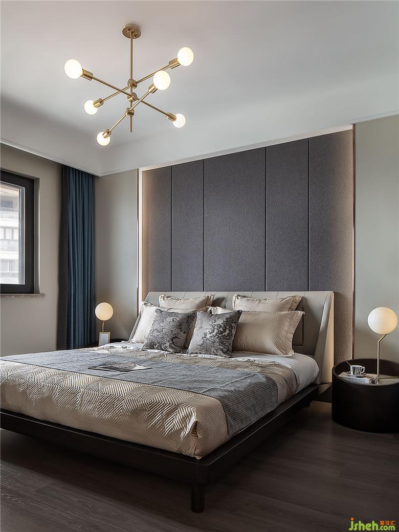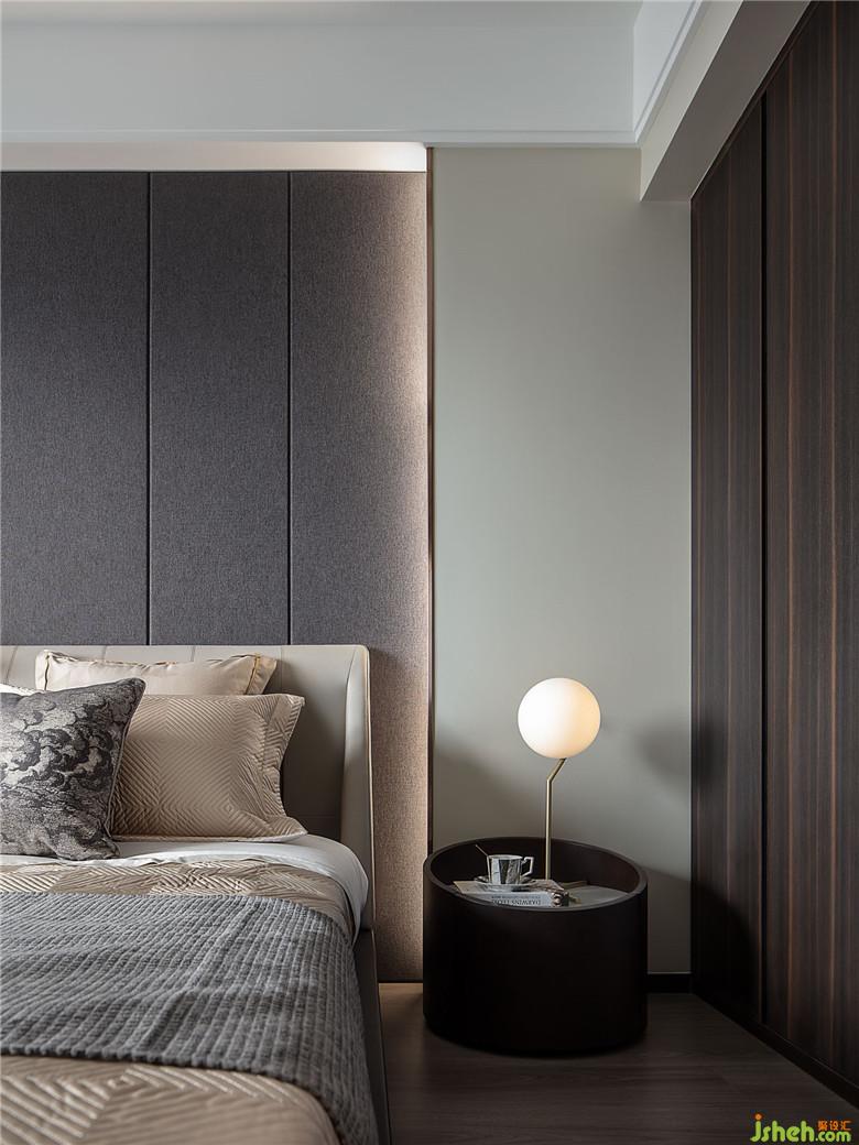主臥,室內(nèi)設計師床頭硬包的使用仿佛深秋的大衣一樣給人以溫暖和安全?;鸩耦^狀的吊燈,更是提高了臥室的溫度。臺燈的造型也是跟吊燈相呼應,顯出了幾分可愛。配色雖然偏沉穩(wěn),卻不讓人壓抑。就像中年的人,穩(wěn)重了,周全了,卻還有自己的夢想和感情的回轉。