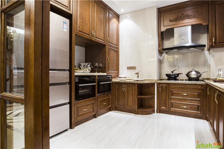現(xiàn)場制作的實木櫥柜,巧妙的連接餐廳與客廳,兼顧美觀和實用。