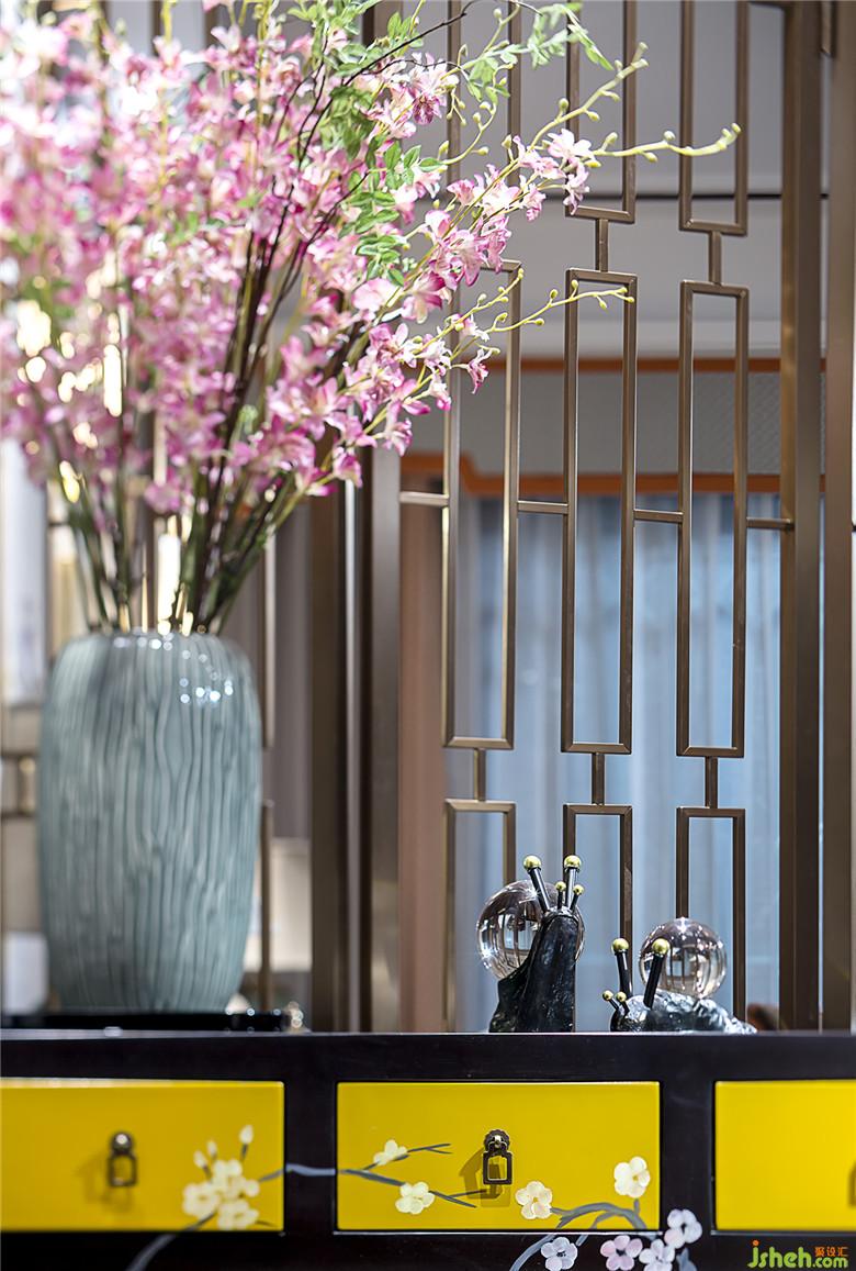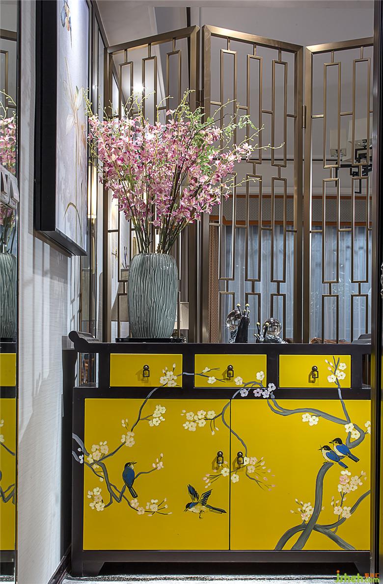 ▲每至春夏,鳥語花香。每次歸家映入眼簾的就是歡快的鳥語聲,再用簡化的不銹鋼屏風(fēng)以陣列的方式穿插其中,迎合了整體色調(diào),規(guī)避了入戶過道的擁擠,使視覺上令空間更為寬廣。