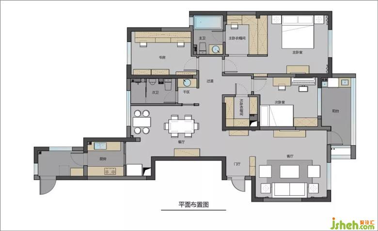 主臥室的柔和簡(jiǎn)潔,兒童房那帶有一絲英倫風(fēng)的華貴,跟充滿理性的書房交織在一起。讓私人空間顯得豐富多彩但又不散亂,主次有序。