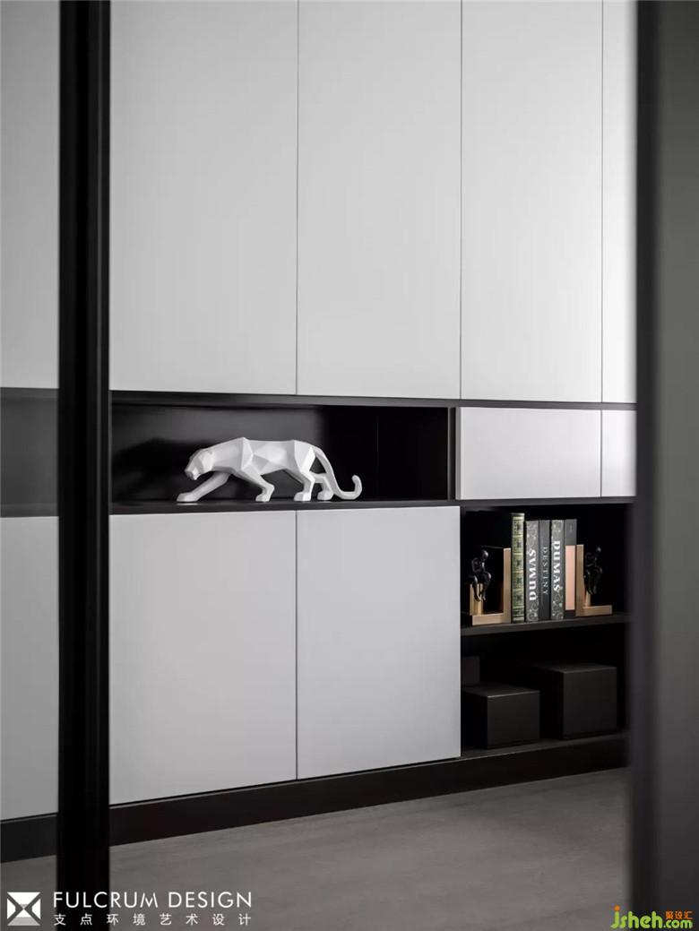 書房于客廳走道僅一扇移門為界,通透的玻璃讓兩個空間保持獨立的同時增加了許多互動感,釋放了空間的可能性。