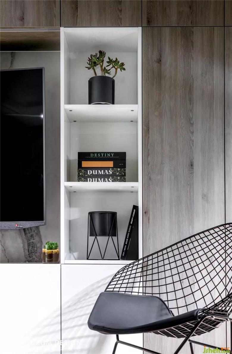 灰色的木紋,白色亮光烤漆,黑色的電視,有一種性格叫冷酷到底