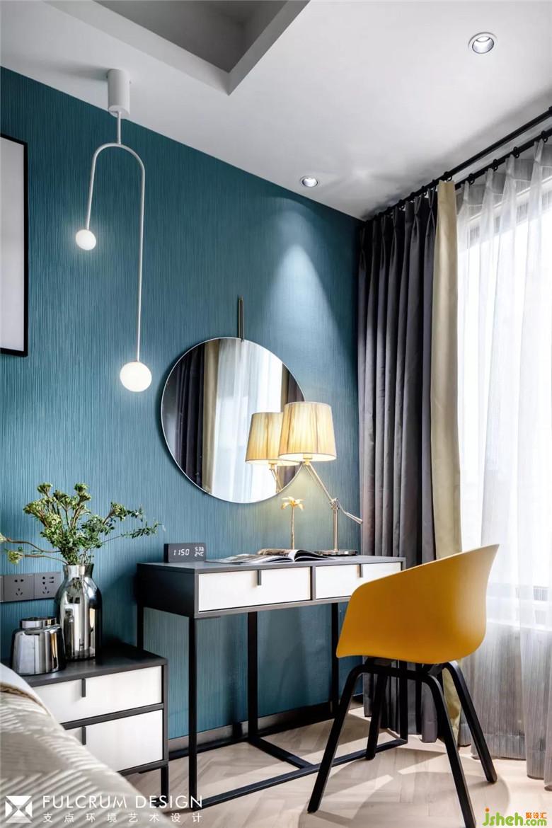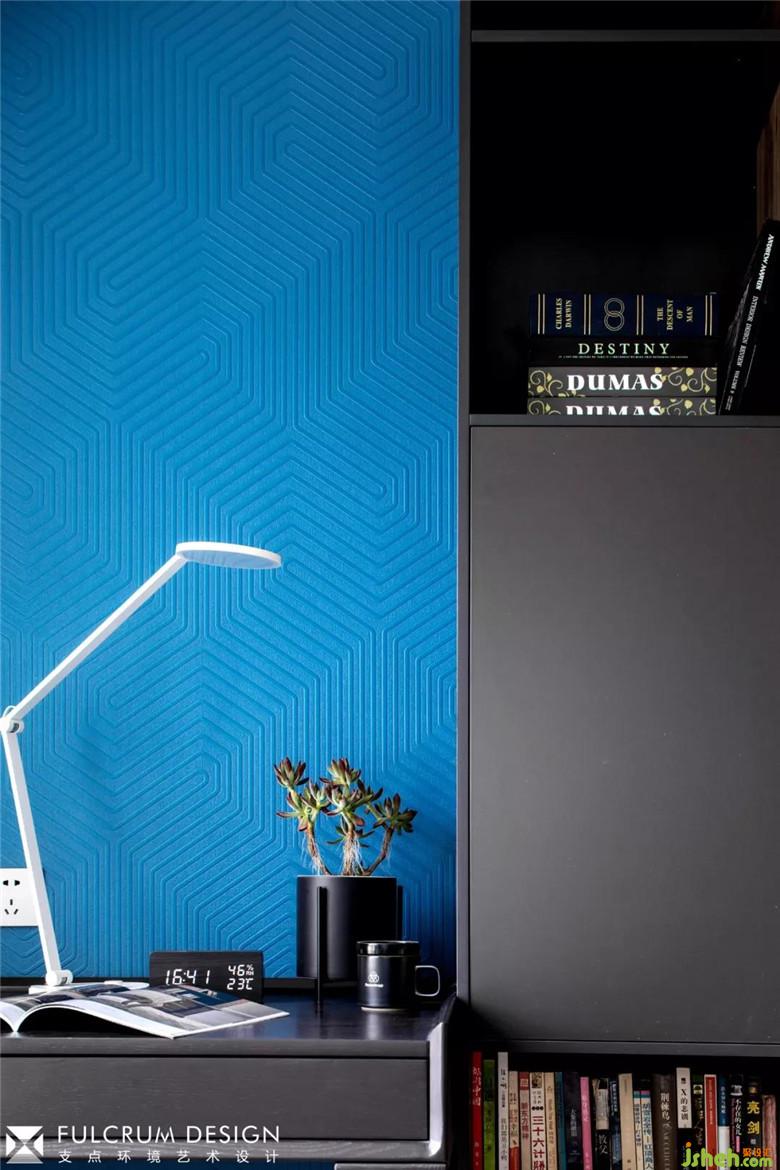 深灰和墨藍的搭配,迷幻的立體壁布,似知識的海洋,又似思想的星空。裝修公司