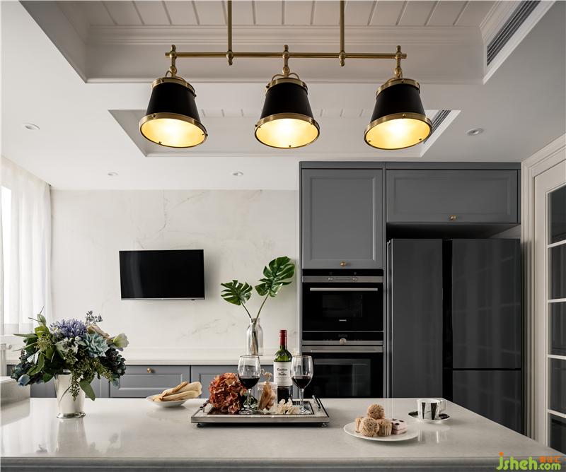 ▲看到了吧,原始結(jié)構(gòu)中不敢想的大量櫥柜操作臺面,有了!大面的餐桌兼西廚臺面,有了!再來兩三把椅子也不怕了!蒸箱烤箱大冰箱,有了!有吃飯時看電視的“惡習(xí)”,也能滿足!2-1>2,豈不美哉!