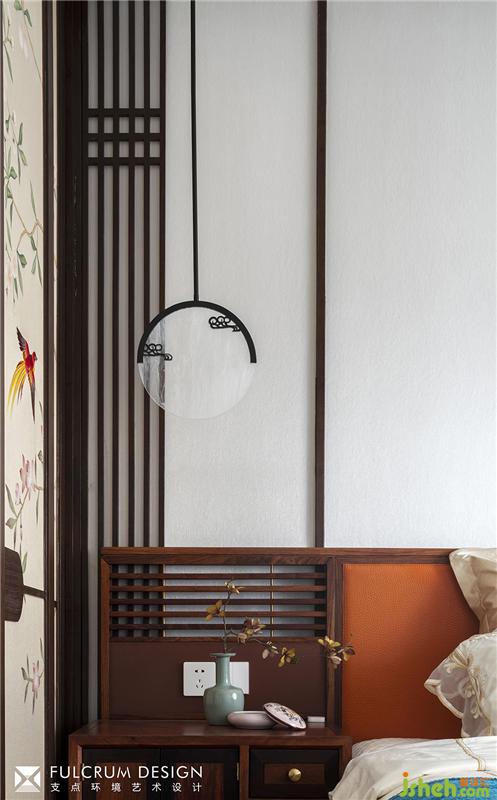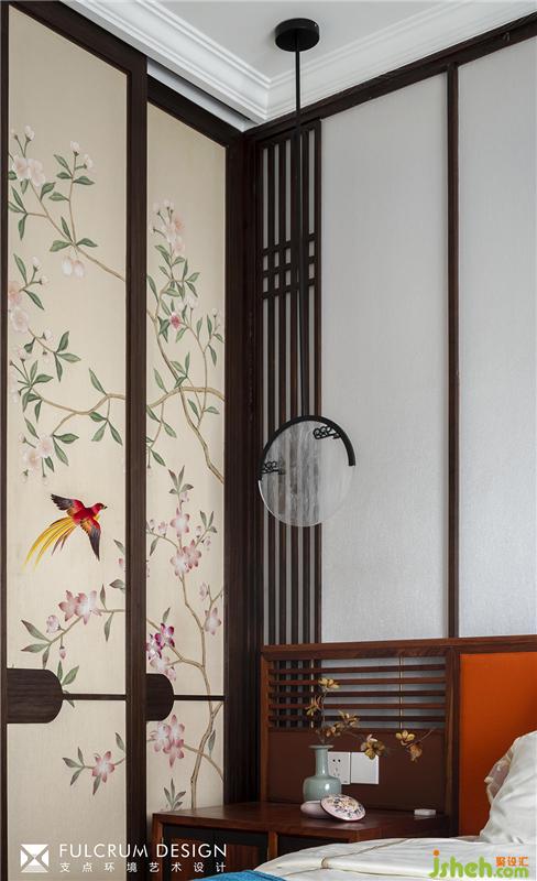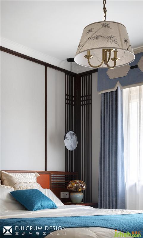 ??主臥進(jìn)門的古董刺繡代入感非常強(qiáng)。進(jìn)入主空間后雅白禪意、何處飛花卻跳出另一番祥和景象。