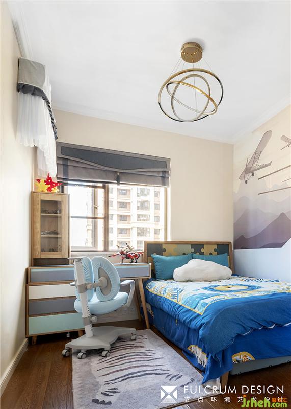??男孩房根據(jù)小朋友的喜好,選用了飛行主題的壁畫搭配了原有的墻紙,既滿足了小朋友的愿望,又能給予孩子一個(gè)愉快健康的學(xué)習(xí)以及自由的睡眠空間。