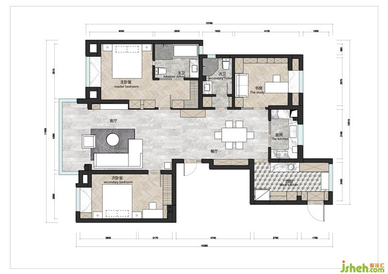 如何中和兩人的性格喜好,對(duì)顏色搭配、色彩明度、純度、灰度、色相的精準(zhǔn)把握與運(yùn)用是設(shè)計(jì)師從始至終在思考的問題,也是本案的難點(diǎn)。