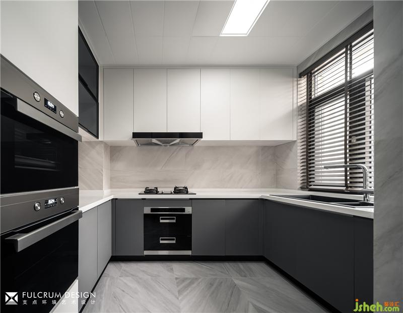 島臺(tái)的對(duì)面是廚房,到頂?shù)墓褡訚M足收納。