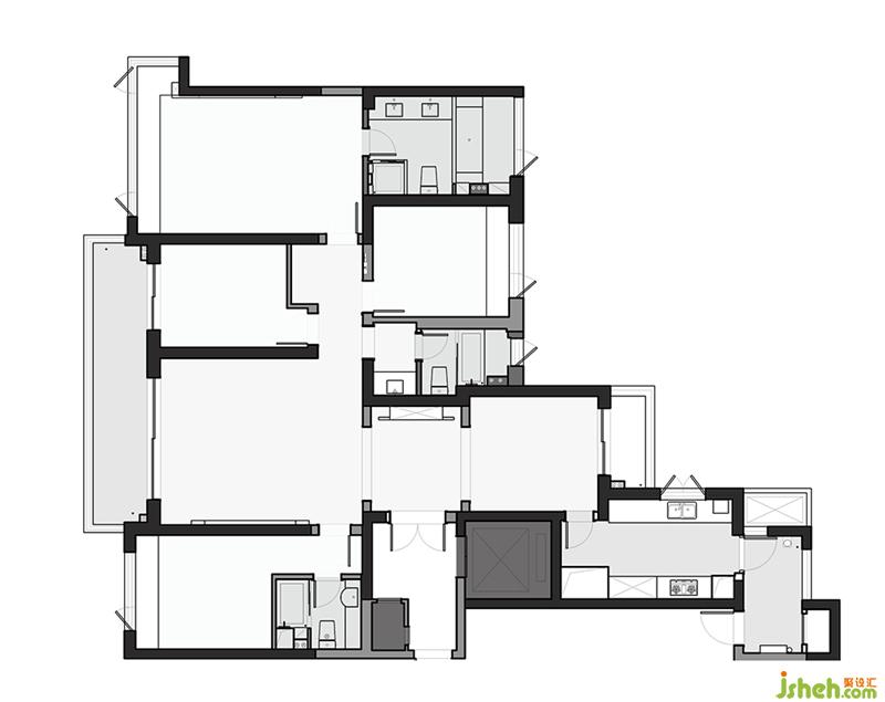 在整個灰白空間里明黃色沙發(fā)活力非凡,隱喻一家五口歡聚一堂的熱鬧喧囂,無數個晚飯后睡覺前的時光在這度過。