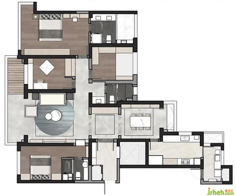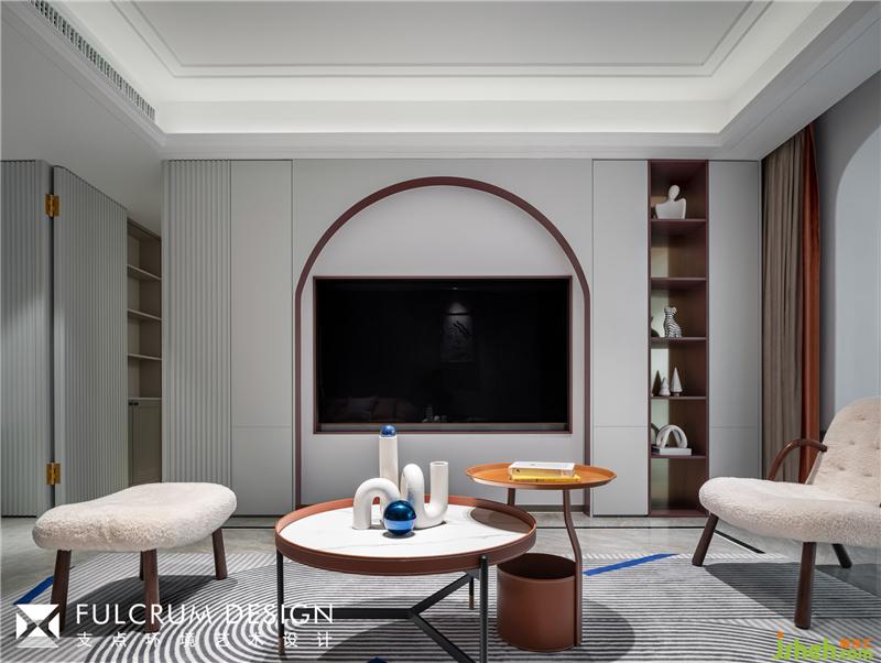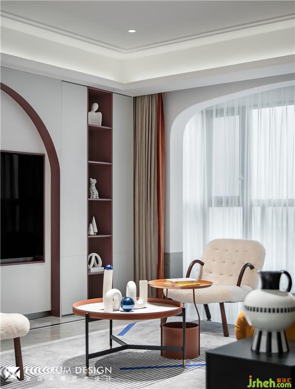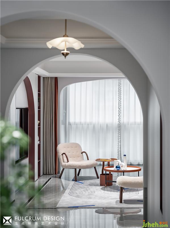 向左轉,取結構之美,弧形門洞層層遞進,把人的視線引入客廳。