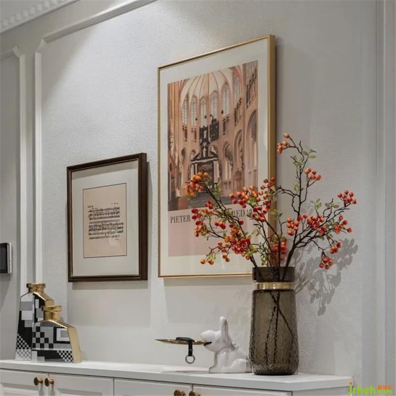 推門回家,墻上的掛畫是家的寫照,紅色櫻桃花束永遠鮮活、靈動,迎接主人的歸來。