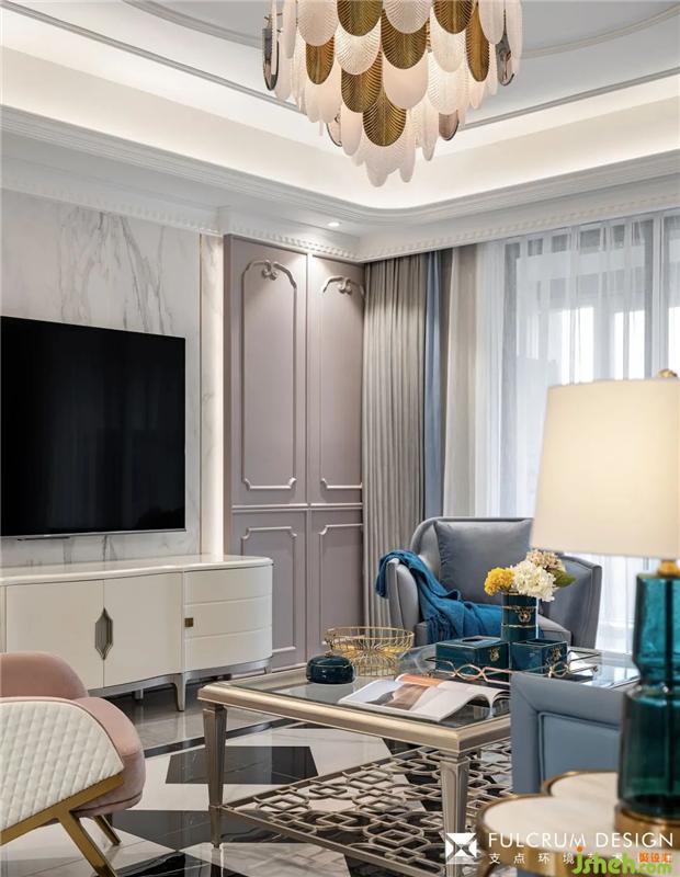 每個家的格調(diào)與品位,是設(shè)計永恒的主題。在此次設(shè)計中,設(shè)計師提取美式傳統(tǒng)造型手法,結(jié)合本戶型的空間尺度,奠定家里美式復(fù)古情懷,搭配局部特色飾面、擺件、燈具營造現(xiàn)代感,打造一個情懷傳統(tǒng)、生活現(xiàn)代的溫情家居生活。