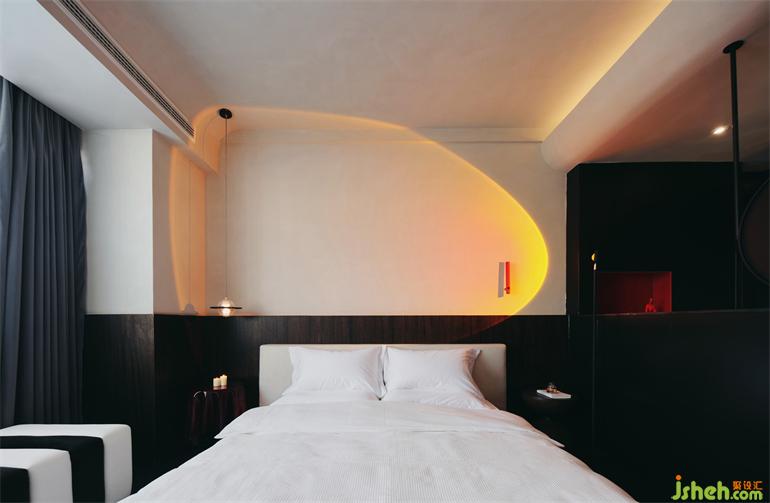 柔和的燈光暈染整個(gè)空間,穿插的界面模糊時(shí)空秩序,有張有弛的節(jié)奏,鍛造情調(diào)淑儀、質(zhì)感愜意的場(chǎng)景氛圍。酒店設(shè)計(jì)墻面藝術(shù)家的畫(huà)作展現(xiàn)出世界的另一種模樣,使得訪客抽離平庸的日常,獲得心靈愉悅并持續(xù)蔓延。