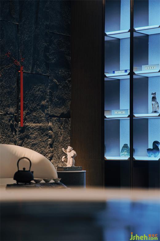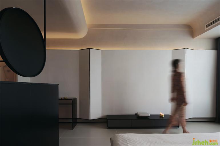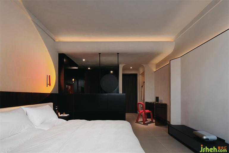 日落的鐘聲已然響起,昏黃的光線悄然充盈在屋子里的細(xì)處角落,深色的石材在默默告知黑夜即將到來(lái),酒店設(shè)計(jì)折疊的墻體暗喻遠(yuǎn)處起伏的潮汐,空間里素雅無(wú)尚的器物變得愈加溫潤(rùn),漂浮著的潺潺水聲營(yíng)造出脫離于現(xiàn)實(shí)、照入夢(mèng)想的情景。