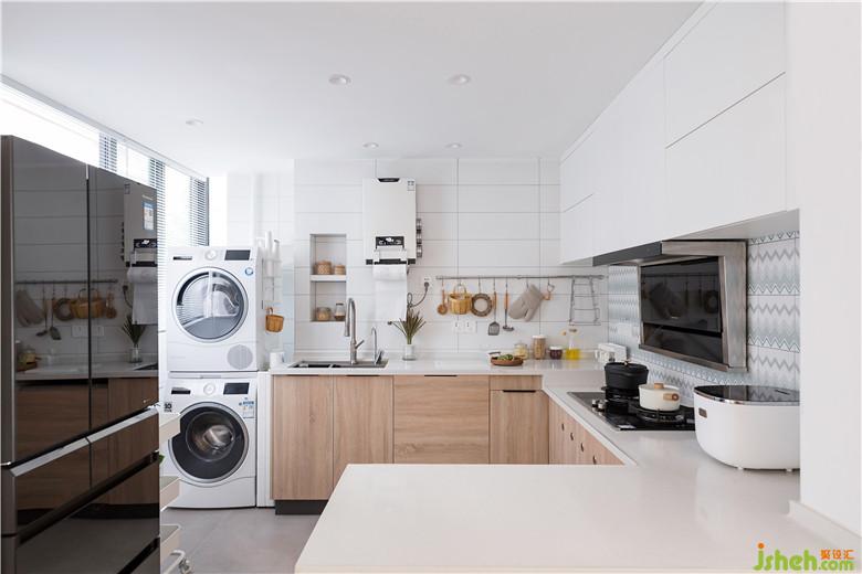 將原始生活陽臺與廚房合為一體后設(shè)計為開放式廚房,便解決了以上廚房改造前的不合理之處