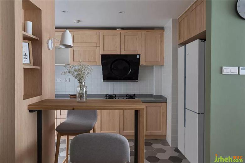 櫥柜柜面與踢腳板都用實(shí)木制作更加整潔統(tǒng)一