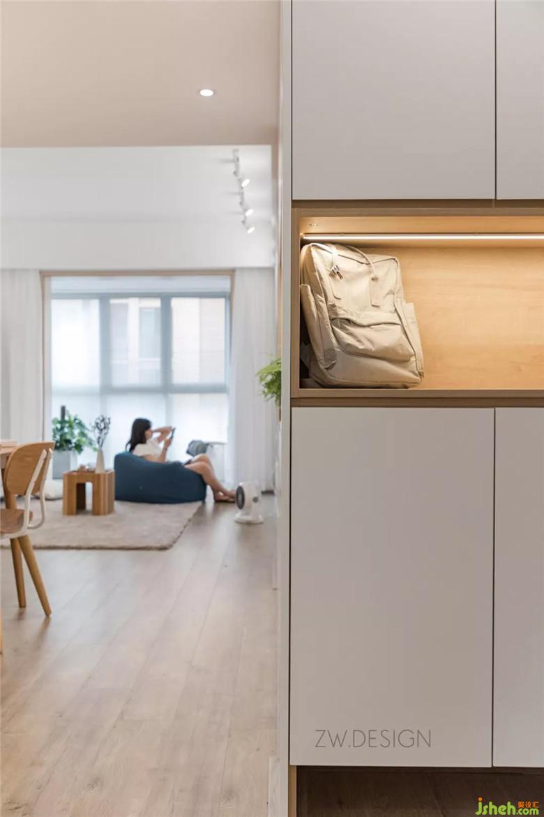 小猴子的鞋子較多,鞋柜儲藏空間需要更大定制的頂天立地式鞋柜,既滿足收納需求,還能避免入戶直觀全室的尷尬