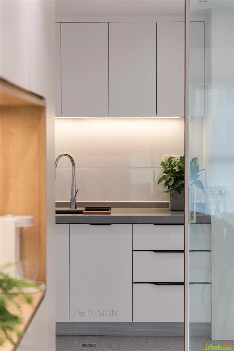 美食的誕生總是少不了廚房里每一件廚具的功勞和美食制作人的喜悅小猴子希望廚房與客餐廳融合,即便在廚房做飯也能與客廳的人輕松交談白色極窄邊框門協(xié)調(diào)整體風(fēng)格,同時增加藝術(shù)感,玻璃門板增加整體通透感,讓廚房在視覺上更加干凈整潔親人及三五好友相聚時,即便身處廚房也能輕松拉近與他們的距離感