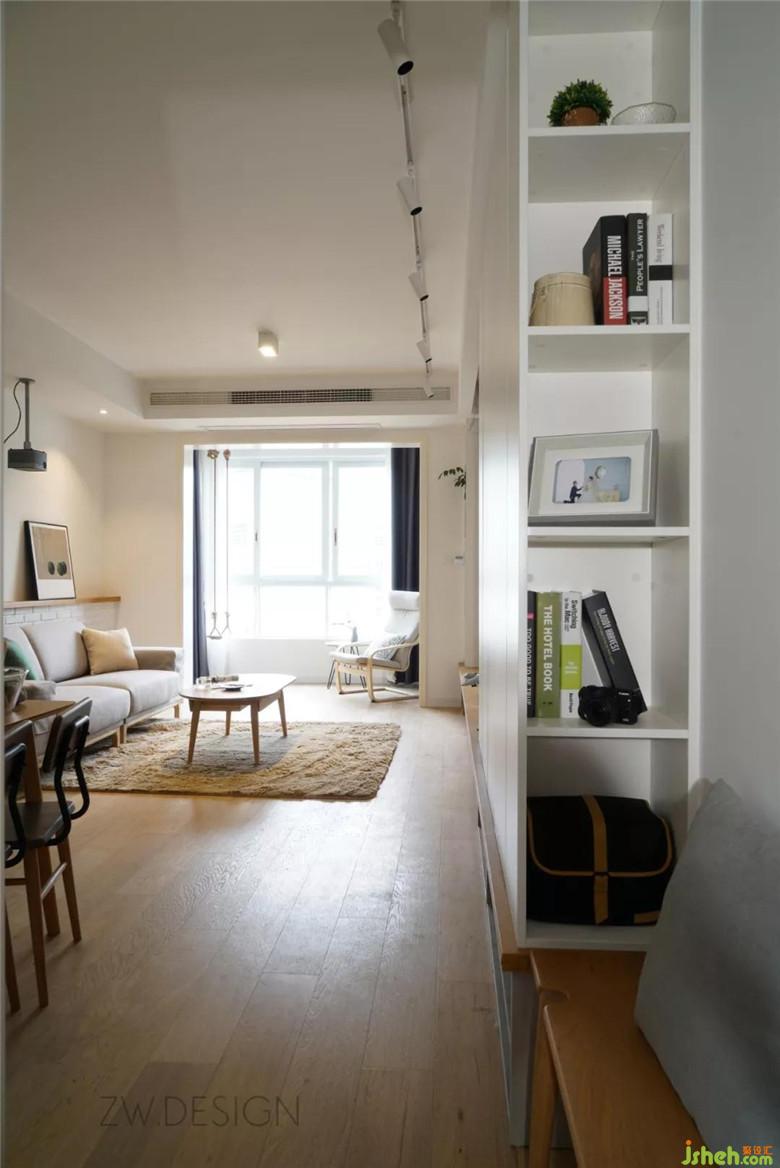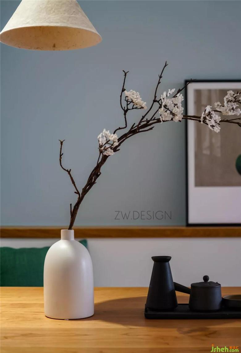 鞋柜側(cè)面做了展示柜,可以放一些喜陰的小植物,收納盒,或隨手放包,將一些美好的瞬間放在這里,開門被幸福迎接。