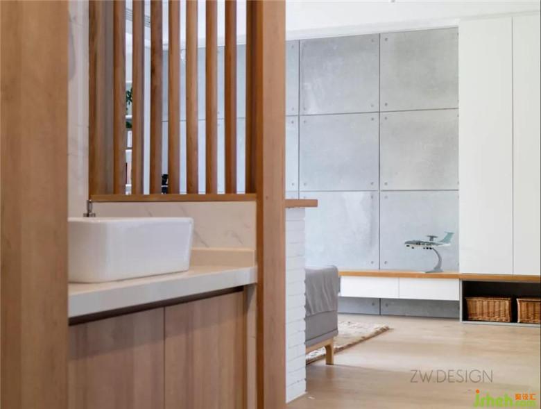 站在臥室門口,透過隔斷看顯得空間特別大。