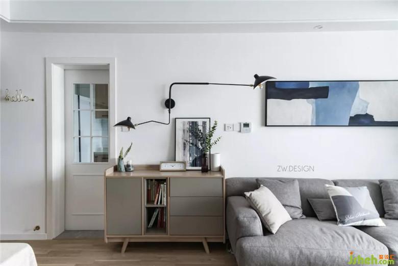 布藝沙發(fā)的肌理觸感,金屬壁燈的幾何造型,方框掛畫的濃墨重彩,在整個(gè)空間里交融碰撞
