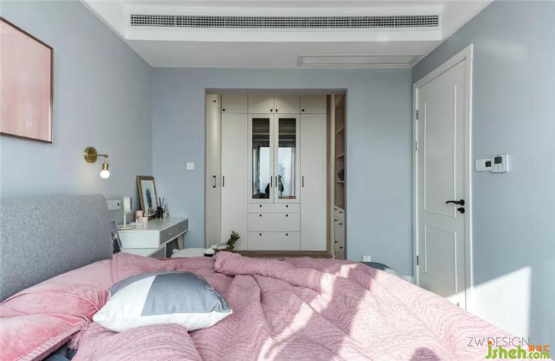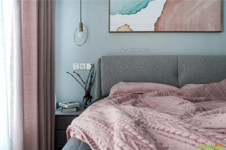 依舊以灰度的藍(lán)色與粉色為主色調(diào),整個(gè)空間看似簡(jiǎn)單,卻在各種不經(jīng)意的細(xì)節(jié)里衍生著一種舒適慵懶