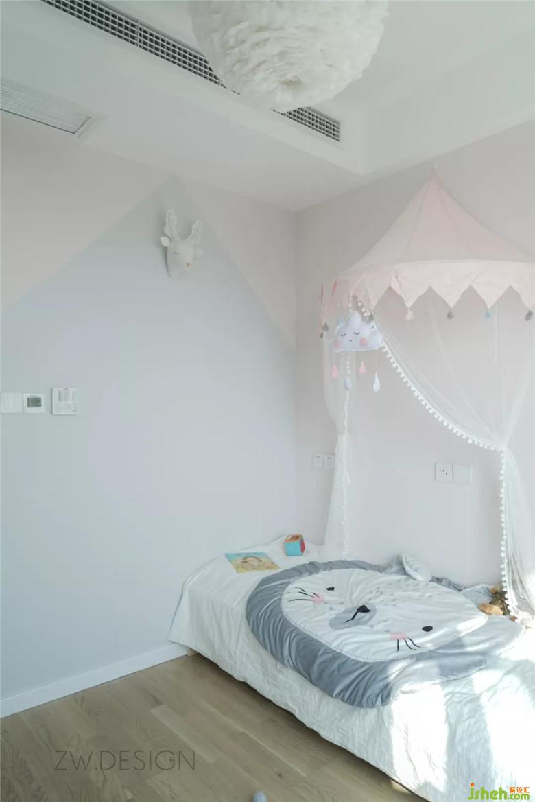 于是兒童房里設(shè)計(jì)為折疊床,白天折疊起來(lái)是寬60公分的小軟塌,且騰出了更多的空間作為寶寶玩耍的開(kāi)闊區(qū)域。裝修公司