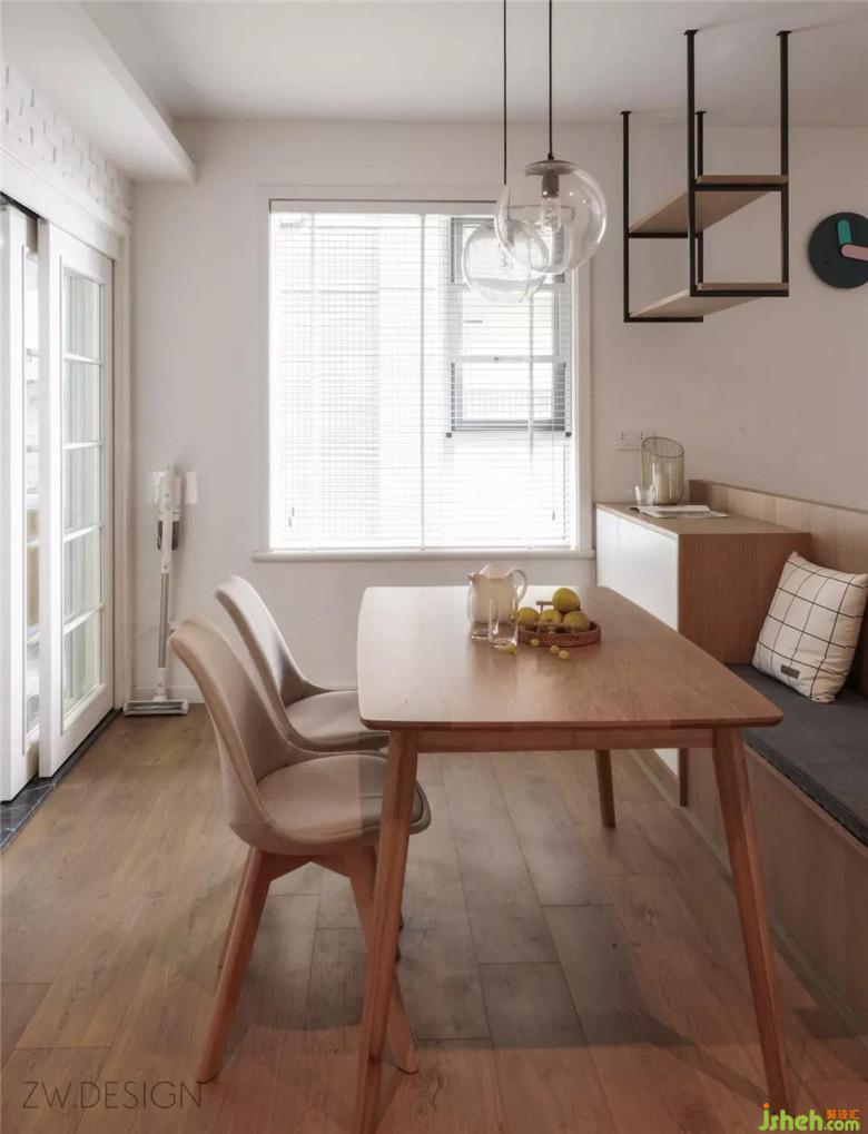簡約的木質(zhì)餐桌,邊角的弧度抹去常見尖角的鋒利感,卡座設(shè)計也不用擔(dān)心偶爾來客人時座位不夠的局限性,卡座邊柜作為餐廳的日常收納角落是重點且不可忽略的存在。