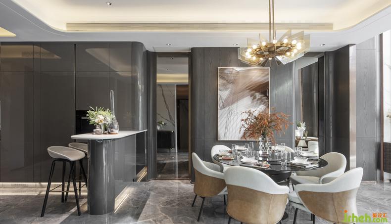 依窗伴景,夕陽斜射,微風(fēng)徐徐,白紗浮動(dòng)。整體風(fēng)格采用現(xiàn)代輕奢風(fēng)格,帶有線條的灰色大理石與暖色調(diào)的家具結(jié)合,專為成功人士量身打造,既時(shí)尚又溫馨,彰顯主人的風(fēng)范和氣度。 孩子們的笑聲在整個(gè)客廳內(nèi)縈繞「居住」不再是簡單的“棲息”而是安放全家人幸福的私密空間。
