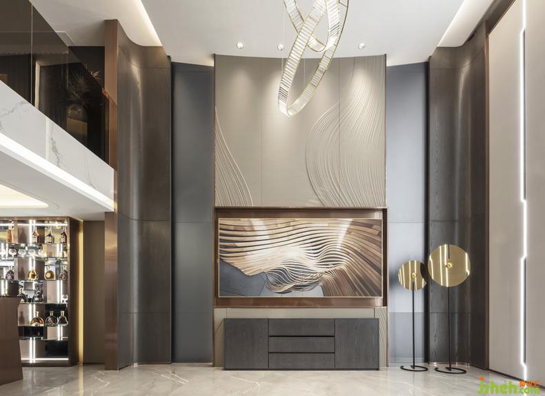 負(fù)一層設(shè)置家庭影院和吧臺(tái),影音室以舒適的皮絨座椅、全息投影技術(shù)提升整個(gè)空間體驗(yàn)感和互動(dòng)性。在這里,多種沉浸式的娛樂(lè)體驗(yàn),帶給居住者精神生活的極致享受。