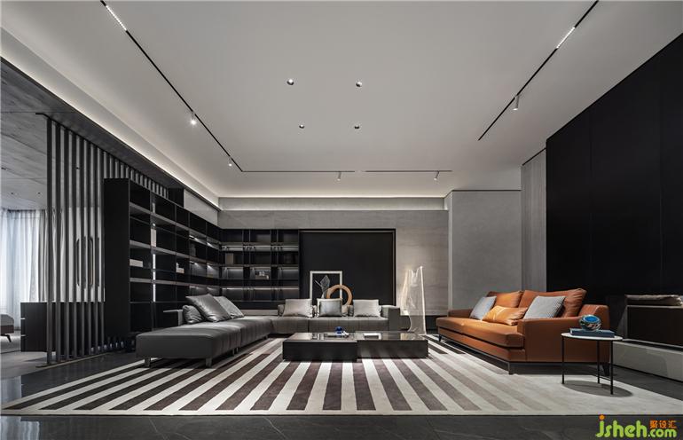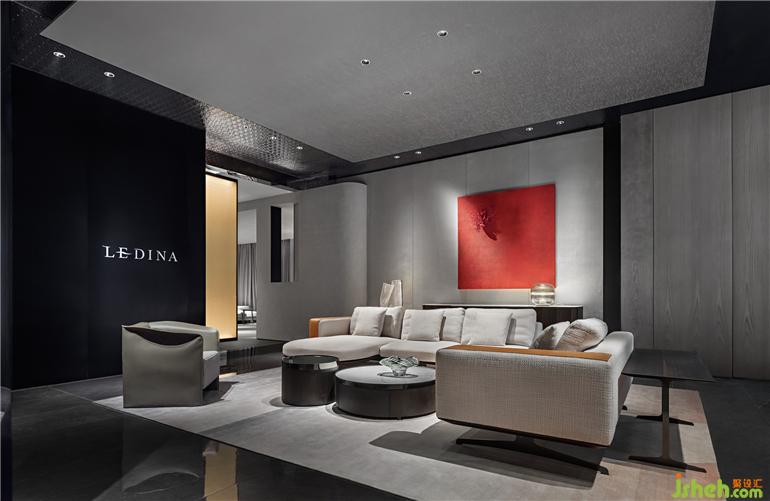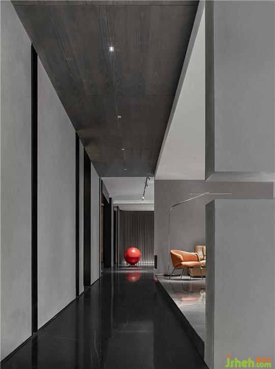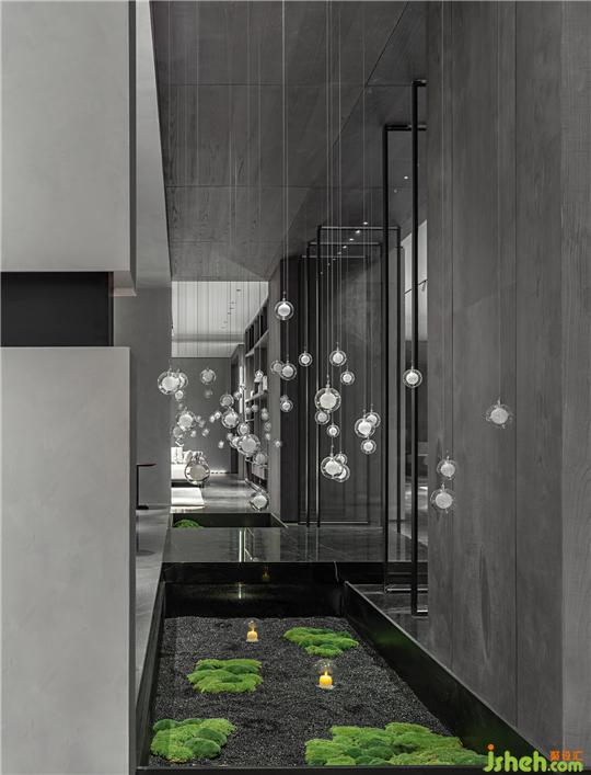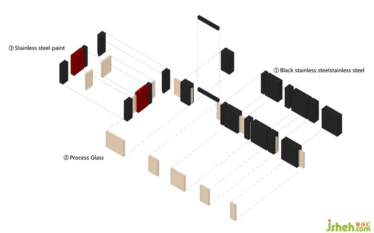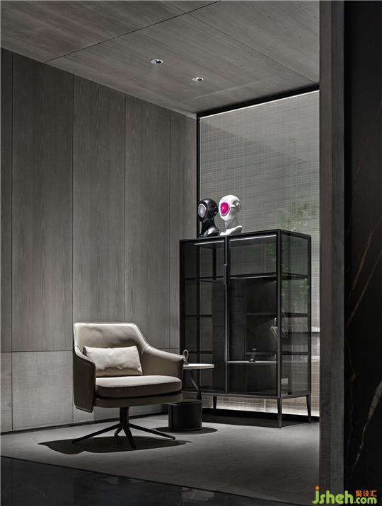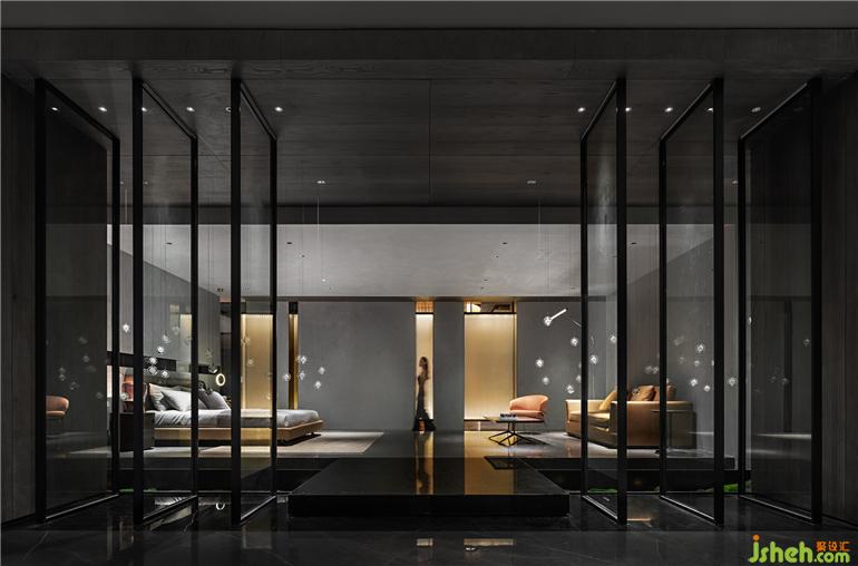 人置身于空間之中,好像進(jìn)入了某部科幻電影,環(huán)形、弧線、穹頂,鏈接過去與未來的想象。金屬不銹鋼帶來現(xiàn)代科技感的張力,深灰色的水波紋不銹鋼,為天,鏡面映射的地板磚,為地,在光的折射下,延展了空間的錯(cuò)覺關(guān)系。懸掛于半空的發(fā)光弧形玻璃,是展示廳設(shè)計(jì)師捕捉了太空日出絢麗的光圈,將其用漸變玻璃材質(zhì)與暖黃色的光運(yùn)用帶入空間的造型設(shè)計(jì)中,實(shí)現(xiàn)了對于追求光明的設(shè)計(jì)理念轉(zhuǎn)化回歸落成在具體化的技術(shù)層面。異形的鏡面不銹鋼形成多面多維的映像,是現(xiàn)實(shí)與虛幻的交融。結(jié)構(gòu)、材質(zhì)與光線的碰撞,暖與冷的對比關(guān)系,形成色彩對立美學(xué),極具夢幻、未知的探索。