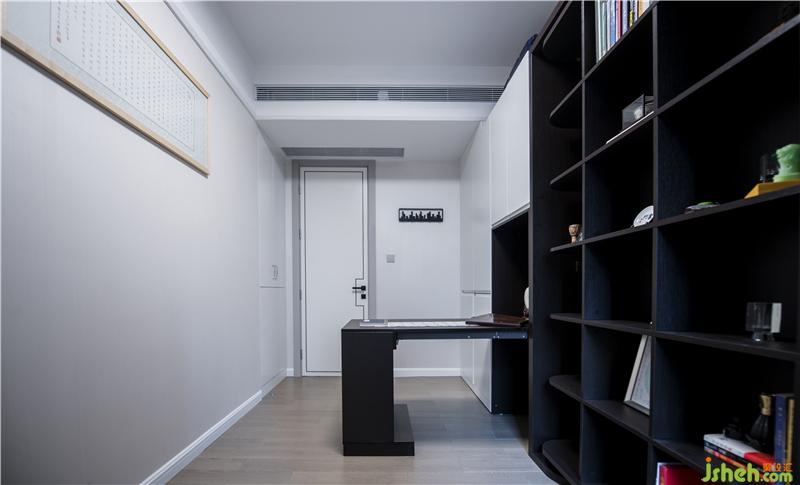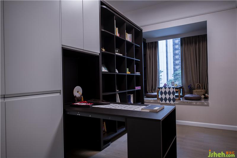 書(shū)房增加了空間的靈活度,可以自如收放的書(shū)桌與書(shū)柜讓空間靈活多變,在有客人來(lái)訪時(shí),可以變成客房。室內(nèi)設(shè)計(jì)師
