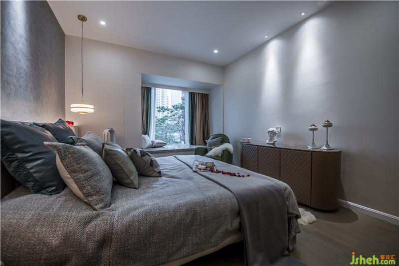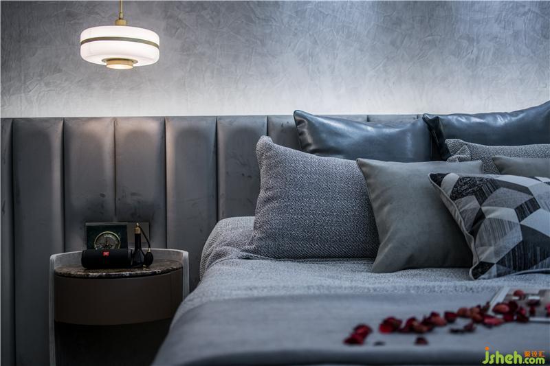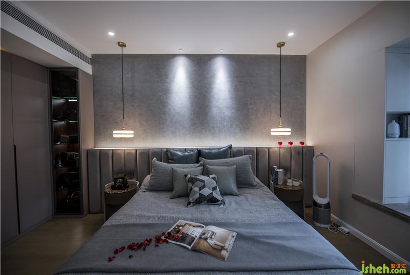 主臥閑雅高級(jí),渾然天成,層疊的灰色的床品,搭配床頭兩側(cè)的圓形壁燈,營造出“云開方見日,潮盡爐峰出”的大氣與雅致。室內(nèi)設(shè)計(jì)師