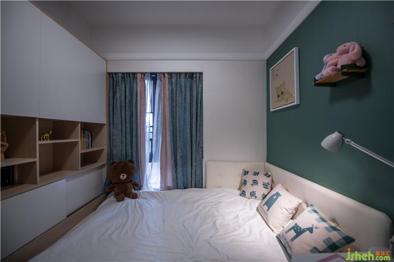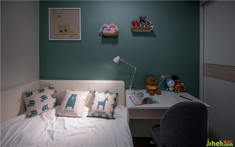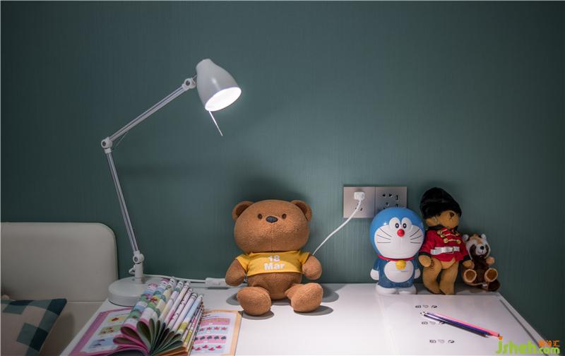 女孩子的房間更加沉靜,眾多的公仔,粉藍(lán)相間的窗簾表現(xiàn)了小女生意趣。