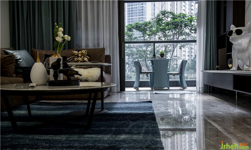 明快的藍(lán)色與大理石在光的催動(dòng)下調(diào)和出優(yōu)雅迷人的氣息,簡(jiǎn)潔而優(yōu)雅將客廳與陽(yáng)臺(tái)銜接起來(lái),展現(xiàn)了一副生機(jī)勃勃的畫(huà)面。