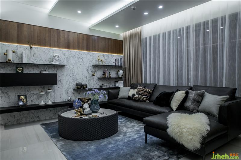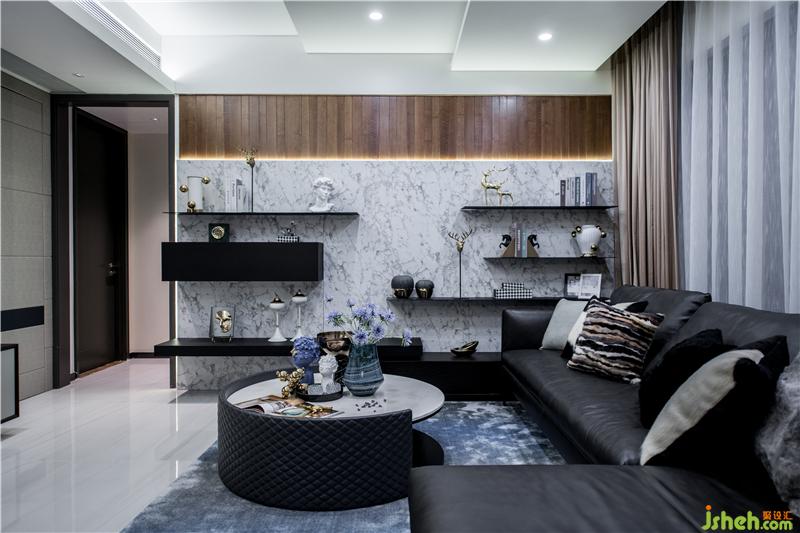 屋主人對客廳偏好意式簡約,在設(shè)計之前就買了圖中的沙發(fā)。配合沙發(fā)風(fēng)格和主臥中式風(fēng)格,客廳設(shè)計更加簡明,希望打造簡約風(fēng)和水墨寫意的感覺。