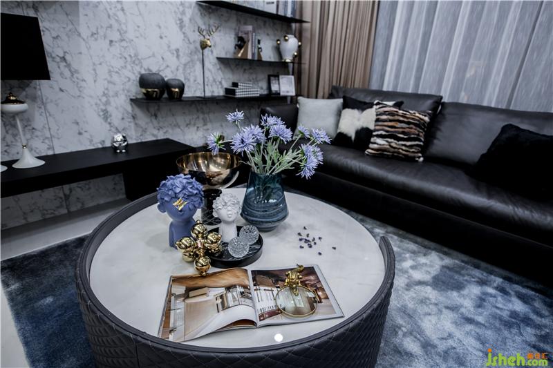 客廳整體非常大氣簡約,在意式風(fēng)中,設(shè)計師也有意識的利用留白意蘊(yùn)造就一種水墨東方的情懷,給人帶來無盡的遐想。而陶罐、雕塑、擺件與深沉的木架呼應(yīng),黑與金相互融合,在整體的水墨風(fēng)中又營造著低調(diào)的奢華和尊貴。室內(nèi)設(shè)計師