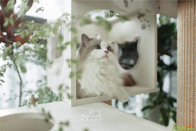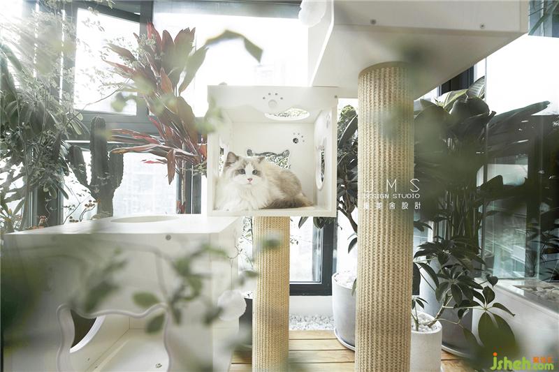 主人家的兩只可愛貓咪,陽臺(tái)成了他們的專屬游樂場(chǎng)。環(huán)繞的綠植花樹灑下陰涼,面朝室外也能擁抱斜斜射入的溫暖陽光,精心設(shè)計(jì)的上下疊合空間,打造了一處供貓咪攀爬、娛樂和休息的“空中樂園”